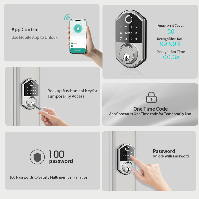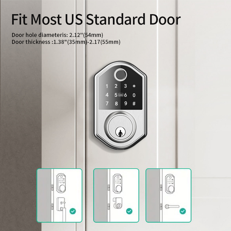 Home » Shop » Smart Door Lock • Keyless Entry Deadbolt Door Lock • Multiple Entry Methods – APP • Fingerprint Touch ID • Keypad Code • Card FOB • Traditional Key • Smart Home Devices